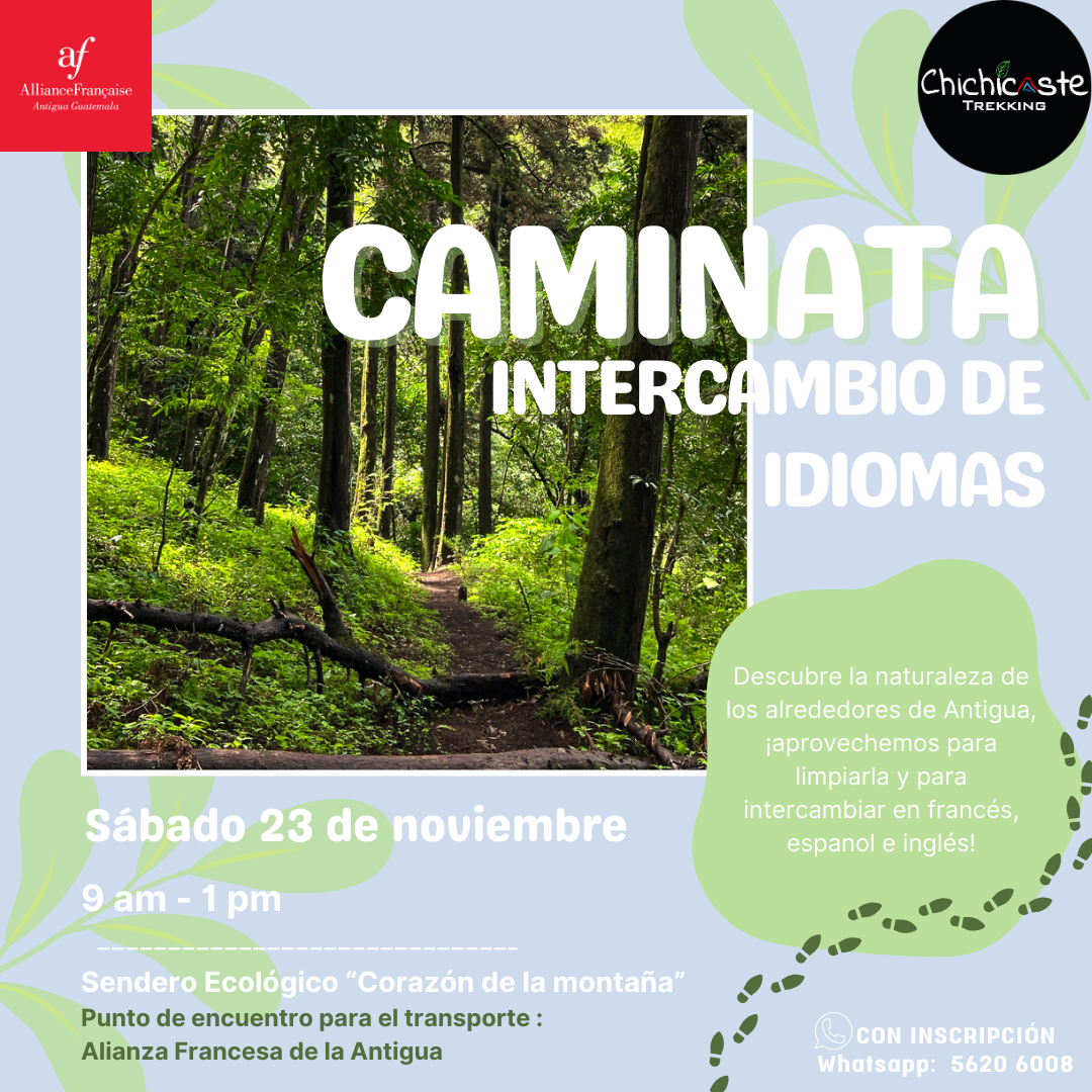 🚶En el marco de nuestro mes pedagógico dedicado al medio ambiente, la Alianza Francesa y Chichicaste Trekking organizan una caminata en “el corazón de la montaña”, un bosque de montaña del municipio de San Antonio Aguas Calientes. Descubrimos juntos la hermosa naturaleza que rodea Antigua y aprovecharemos la oportunidad para limpiar los alrededores y hacer un intercambio de idiomas dinámico!🗣️