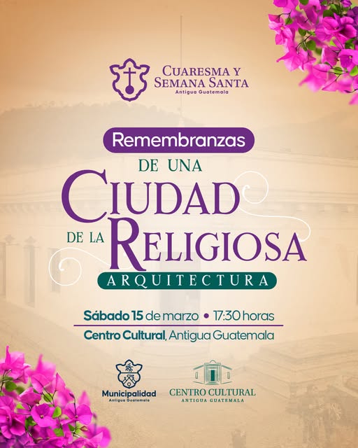 Sumérgete en las Remembranzas de una Ciudad de Religiosa Arquitectura. Este sábado 15 de marzo, te esperamos en el Centro Cultural de Antigua Guatemala a las 17:30 horas.