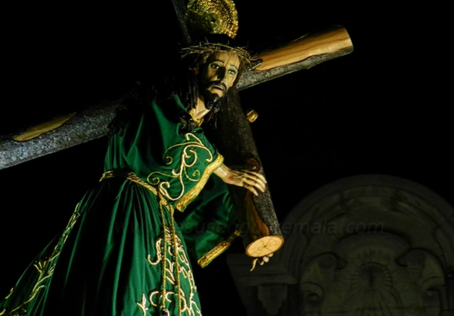 En 1670, los vecinos del caserío San Juan Perdido, ubicado en lo que hoy es una finca camino a Santa Lucía Cotzumalguapa, solicitaron al Ayuntamiento de Santiago de los Caballeros que se les autorizara su traslado a la ciudad debido a que estaban sufriendo el azote de epidemias y plagas de langostas y murciélagos. El traslado les fue autorizado. Debido a su religiosidad, los parroquianos llevaron consigo la escultura de un Cristo o Señor Crucificado (Por el año 1748 así se le mencionaba), imagen que resguardaron en un rancho construido de adobe y techo de paja, y después en un sencillo oratorio edificado en 1760.
